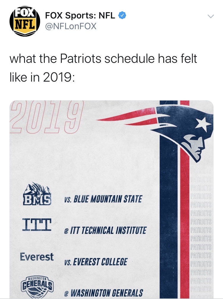 Yesterday Fox Sports tried to troll my New England patriots claiming they’ve had a weak schedule mocking up this hypothetical schedule below