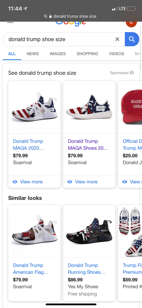 After a short discussion with one of the homies last night about how small Donald Trumps feet are (he claims to be a size 12, but I guarantee that’s bullshit), I stumbled upon a gold mine of Trump inspired fake sneaker FIRE.