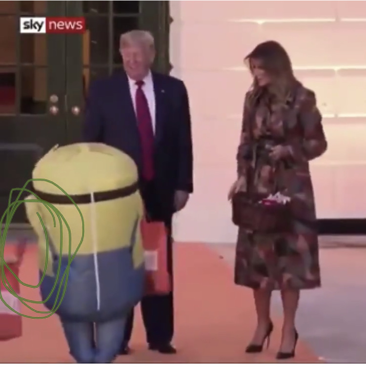 Now WCT, doesn’t get political but had to address this. The latest in Trump’s viral presidency concerns Trump handing out candy to young children. Sweet, innocent, what could go possibly go wrong/weird. Let’s check the film. First off people aren’t even discussing how Trump skips over Spider-Man. Oh well, but then both Trump and Melanie place candy on top of the minion’s head. Poor kid. He even holds out his bag after. Tragic really. The top play here is there kid who has their bag open ready to snag the sliding candy. This kid is going places.