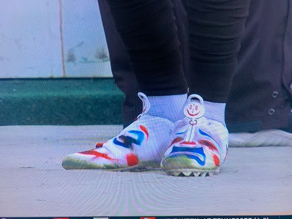 Jarvis rocked a custom pair inspired by both the current box office smash “the joker” (right foot) and previous box office smash “the dark knight” (left foot). While we all know the footwear choice is appropriate for a joke of a franchise like the Browns, Godell probably got a phone call from some concerned conservative owners in the league who were thinking the vibe of the footwear was a little too disturbing for the young viewers at home, and demanded a change. “These here shoes feel too school shootery to me Roger, can’t have the fans attacking the NRA again, also UT should never wear cool alt jerseys at home, it’s orange or nothing, tell those students to fuck off,” is probably how the call went.