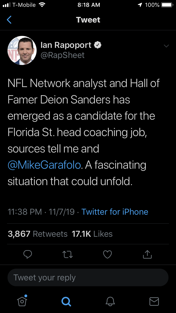 Earlier this week the haters were out in full force. Calling me stupid for saying who should be the next Head Coach at FSU, and my gambling. All that has happen since that moron is me getting scorching hot gambling, and now Deion Sanders is a candidate at FSU.