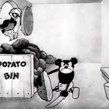After he beats up on all of the animals to the tune of his song, Mickeys dip spitting boss again makes an appearance to tell him to stop fucking around and get back to work . Where the short concludes with Mickey skinning potatoes, during which he knocks a parrot that as been mocking him out off a window, then laughs while listening to it drown outside, I’m really not making that up, he actually laughs while it drowns.